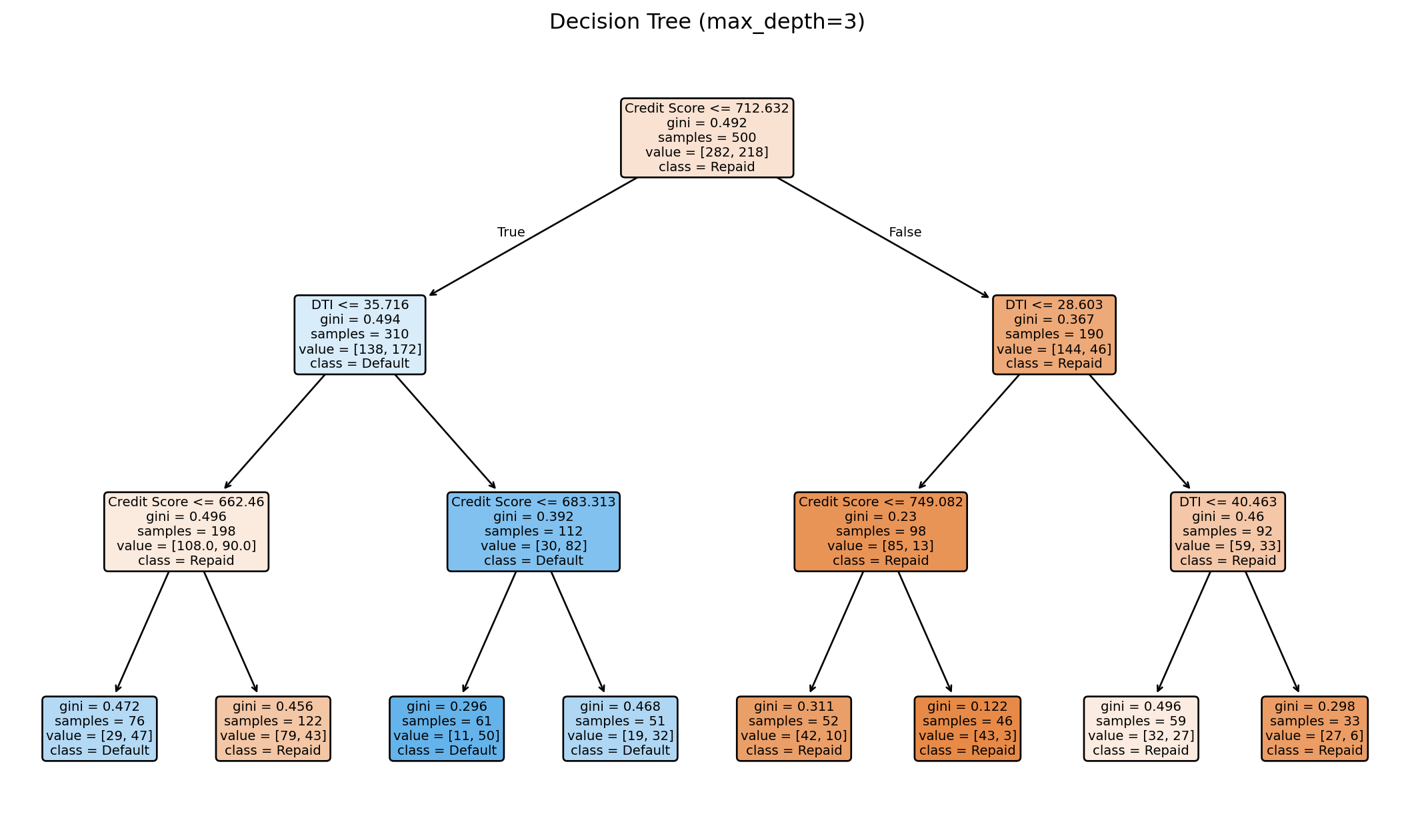 print(f" Accuracy: {(class_pred == default).mean():.1%}")Using threshold = 0.5:
