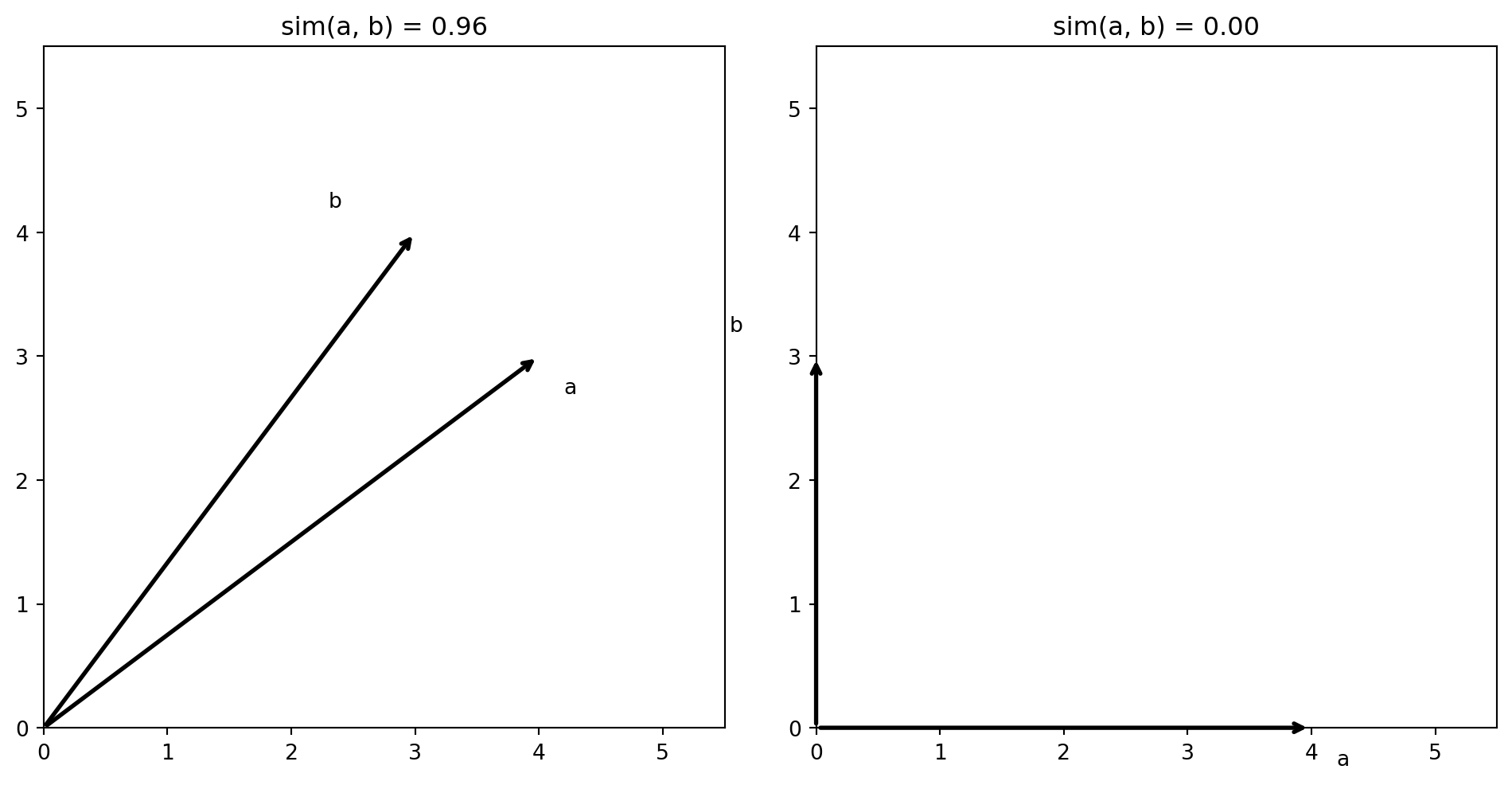 Similarity and embeddings: Cosine similarity measures how closely two vectors point in the same direction. Word2Vec learns dense vectors where semantic similarity corresponds to geometric proximity. Contextual embeddings (BERT, GPT) produce different vectors for the same word depending on context.