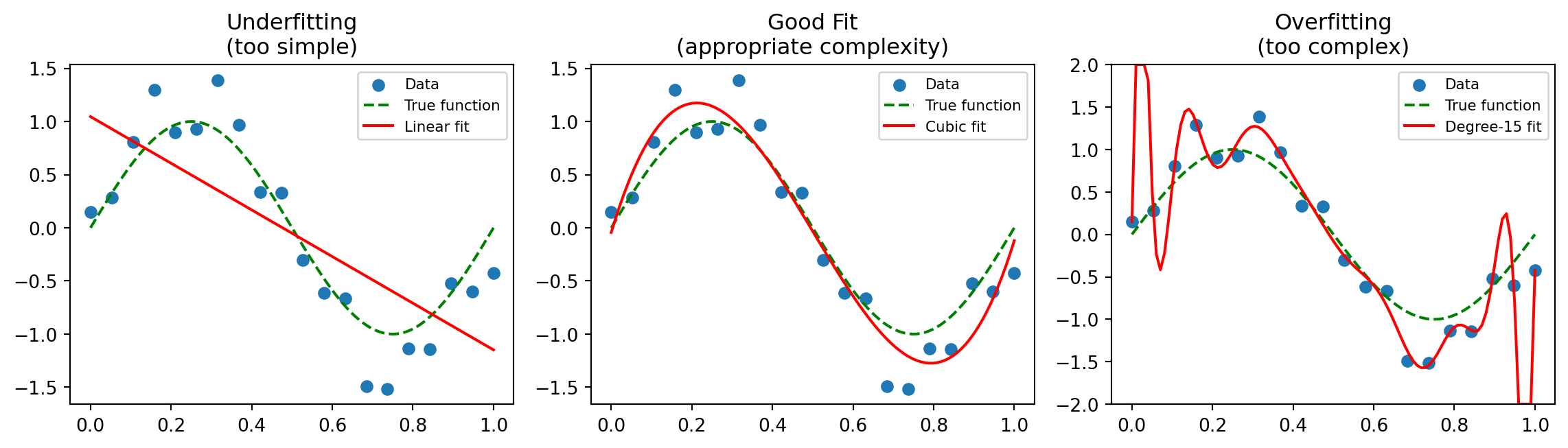 | Polynomial | \(f(x) = \beta_0 + \beta_1 x + \beta_2 x^2 + \cdots\) | Coefficients |