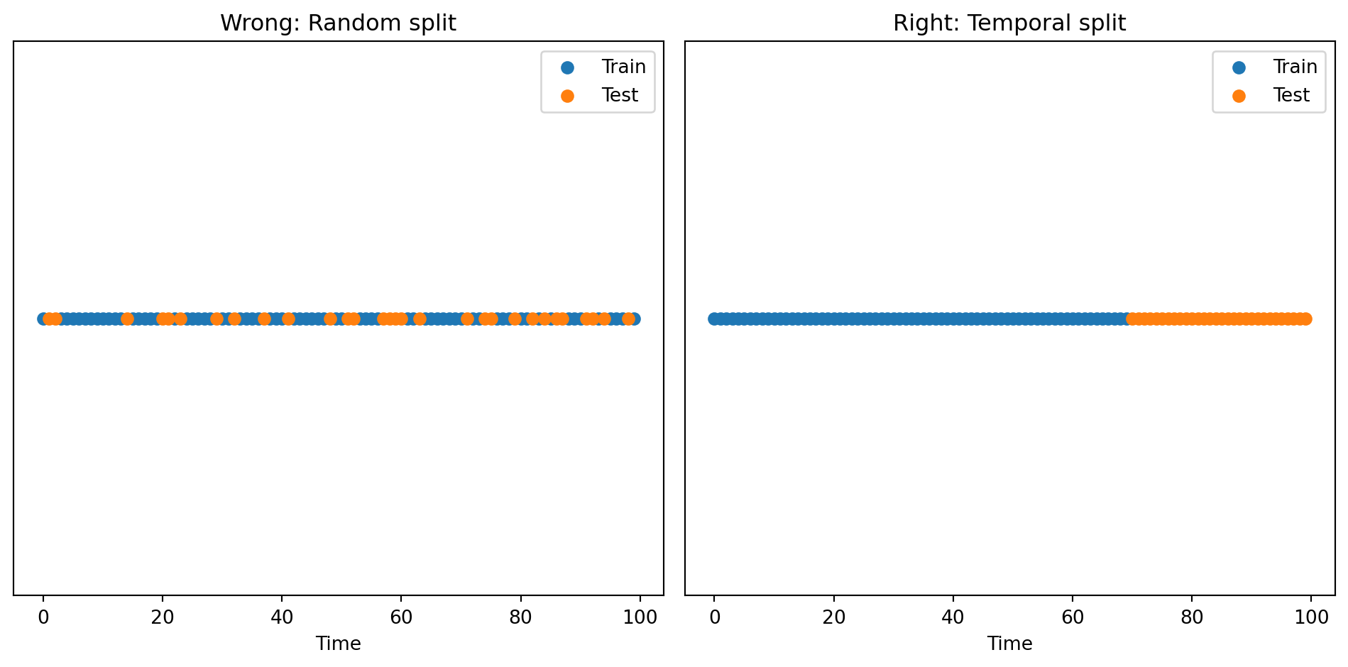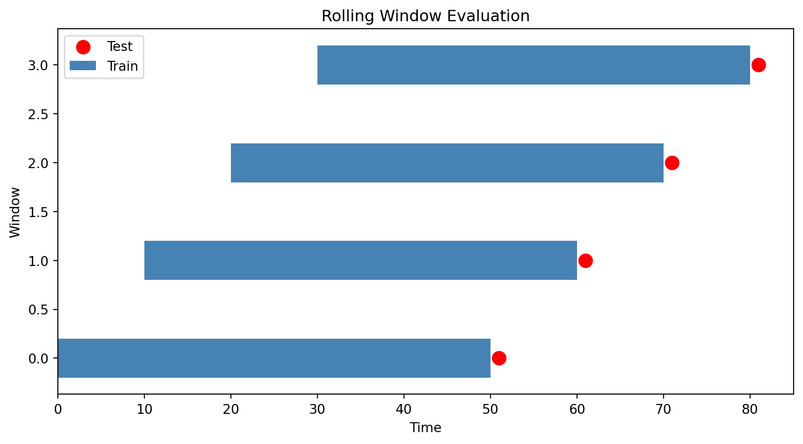 print(f"Fold {i+1}: Train {train_idx[0]}-{train_idx[-1]}, Test {test_idx[0]}-{test_idx[-1]}")TimeSeriesSplit folds: