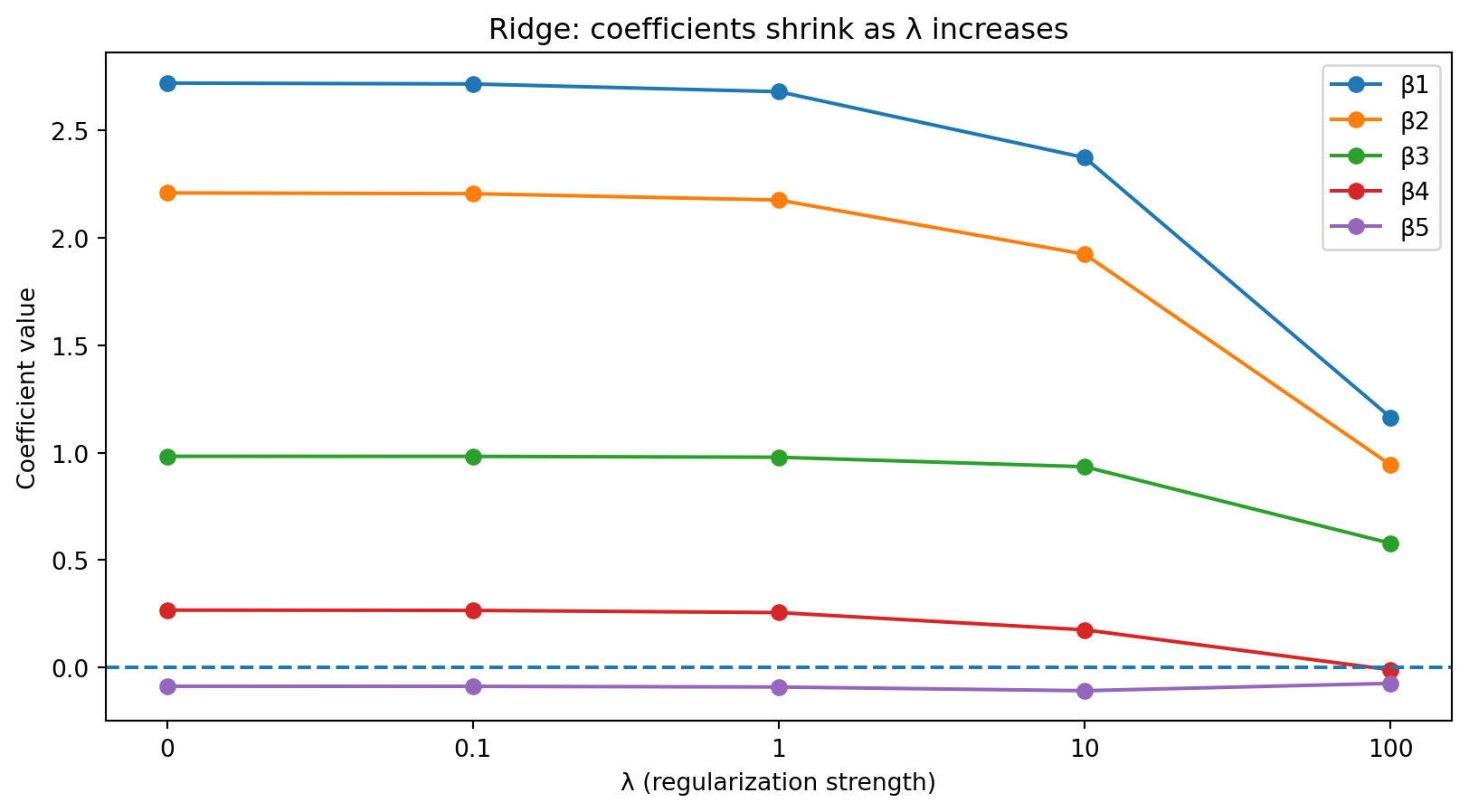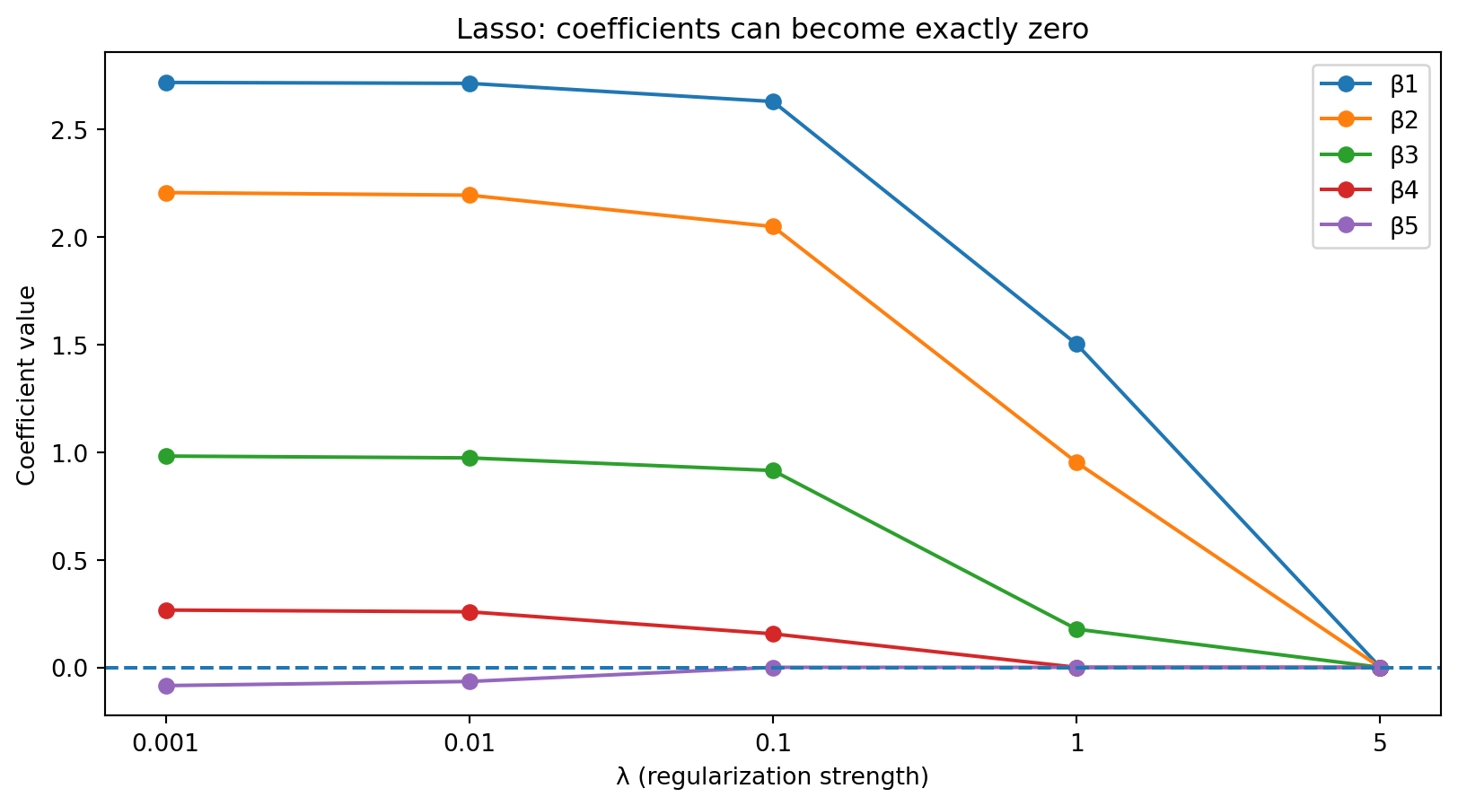 print(f"Coefficients: {np.round(lasso_cv.coef_, 3)}")Best lambda: 0.0231