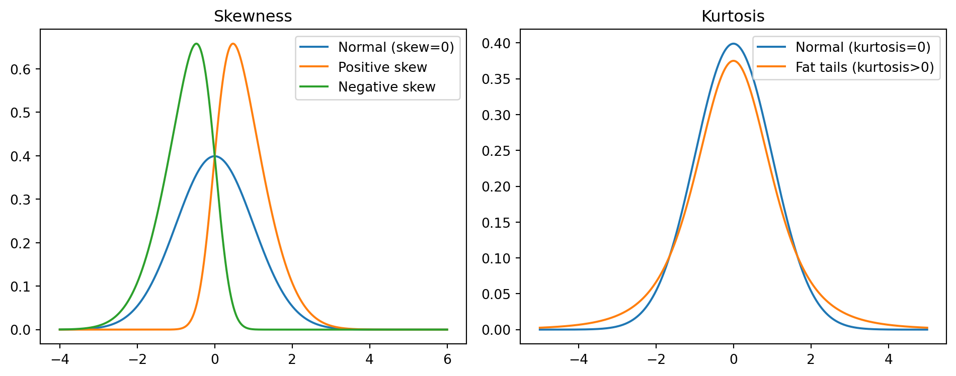 The normal distribution works fine for “typical” days. But it dangerously underestimates tail risk—4-sigma events happen 88× more often than normality predicts. Black Monday (1987) was a 23-sigma event: probability \(\approx 10^{-117}\) under normality. Yet it happened.